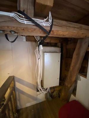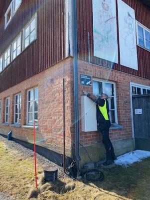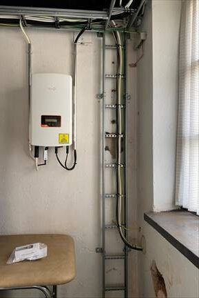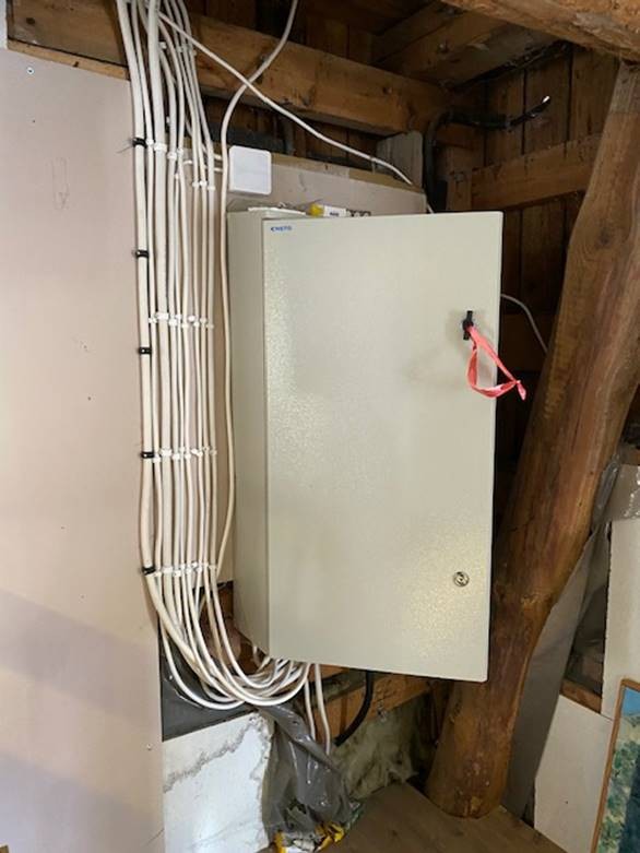 Kilpailutimme kolme alueemme toimijaa. Heistä valitsimme Solar age Oy:n. Aloitimme valmistavat työt. Se tarkoitti mm. vanhan sähkökaappimme irrotusta, taustan eristämistä ja levyttämistä, minkä jälkeen saimme kiinnitettyä kaapin uudelleen tukevasti.