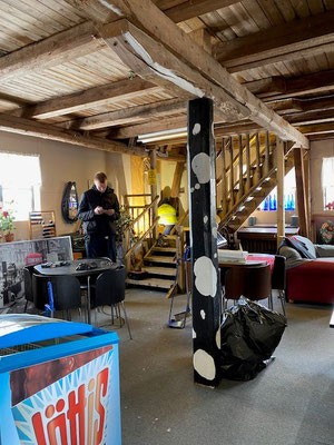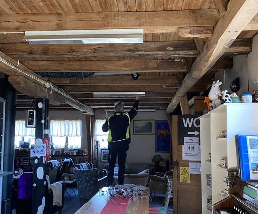 Talkootöistä pienempiä sähkötöitä teimme talkoilla, esimerkiksi vaihdoimme salien vanhat loisteputkivalot led-valoiksi sekä lisäsimme muutaman pistorasian ja valokatkaisijan.