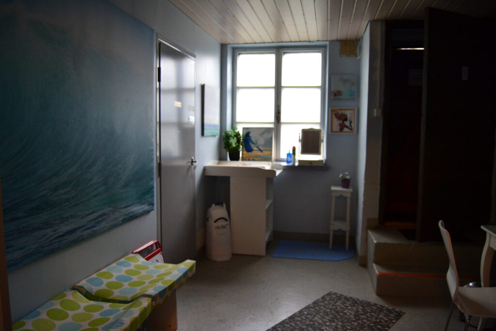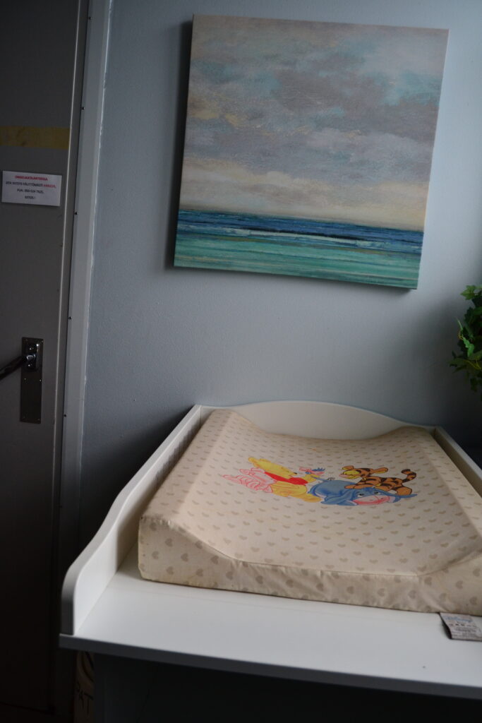 Vaipanvaihtopiste löytyy alakerran WC-aulasta