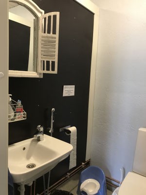 Tilassa on 3 normi WC:tä, 1 henkilökunnan WC /tekninen tila sekä suihku. Jokaisessa vessassa on myös bidee-suihkut.