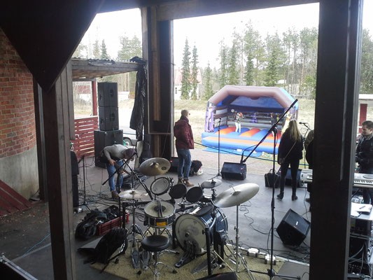 Mannin Navetan takapihalla seisoo hulppea 128 neliön esiintymislava, missä riittää sekä näköä että kokoa. Takahuoneesta pääsee helposti huomaamattomasti lavalle. Miksauskoppi on optimaalisessa paikassa. Portilta löytyy pieni lipunmyyntikoju. Omia bajamajoja on yhteensä 4 kappaletta ja ne on myös erikseen vuokrattavissa. Takapihalle mahtuu melkoisesti väkeä ( neliöitä noin 3000) ja se on helposti muokattavissa tunnelmaan sopivaksi ( lisäämällä telttoja, aitoja jne.). Kokemusta on mm.  lasten retkistä, lastentapahtumista, isoista hääjuhlista sekä festivaaleista (mm. Mannin Navetan Open Airit, Navettarokit ja Hammer Open Airit). Alue on helppo rajata ja valvoa. Tätä Mannin Navetan kokonaisuutta on vaikea selittää ja kuvat eivät kerro kaikkea. Tämä kannattaa tulla itse paikan päälle katsomaan.